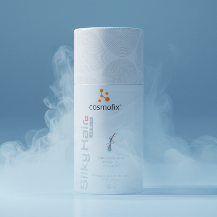 Cosmofix Silky Hair AF serum - enriched with Argan oil ,vit E which provides a fatty layer to your hair and scalp that may help prevent dryness and can help reduce fiziness and boost shine, Perfect for All Hair Type.