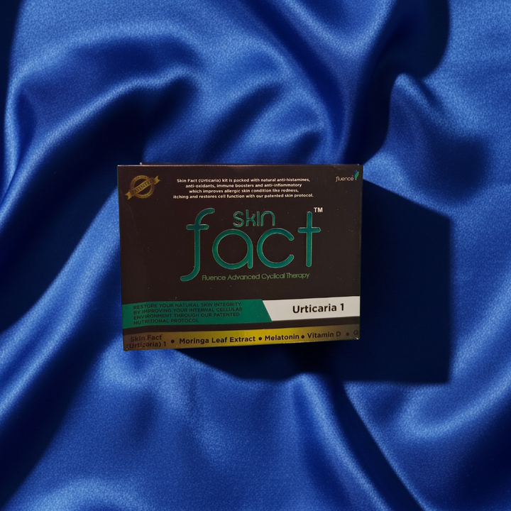 Skin Fact (Urticaria) kit is packed with naturať anti-histəmine anti-oxidants, immunc,.baosters and antirinflammatory Which improves allergic skin condition like redness itching and restores cell function with our patented skin protocol.
