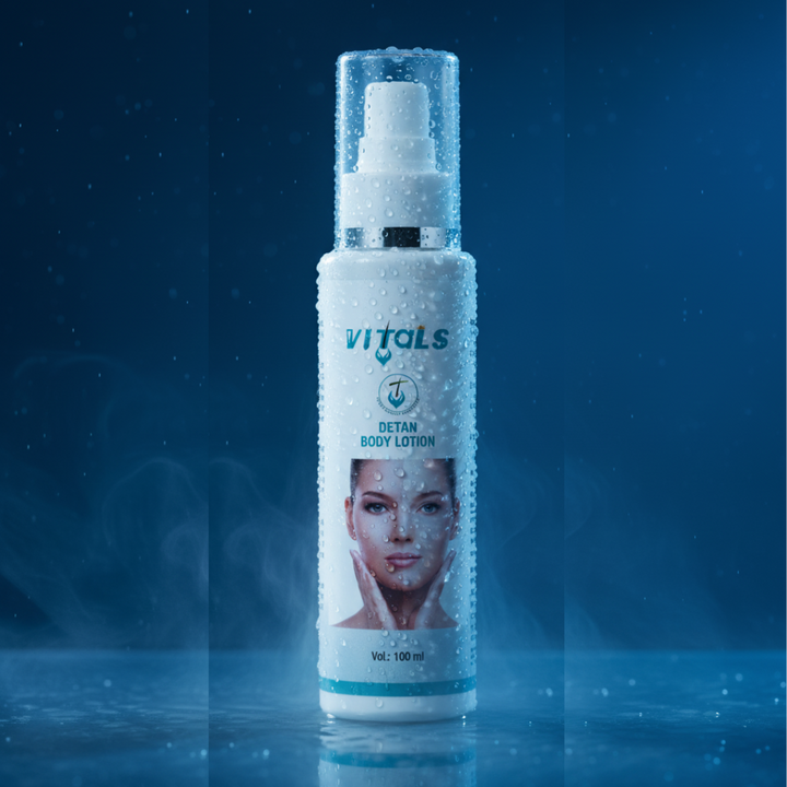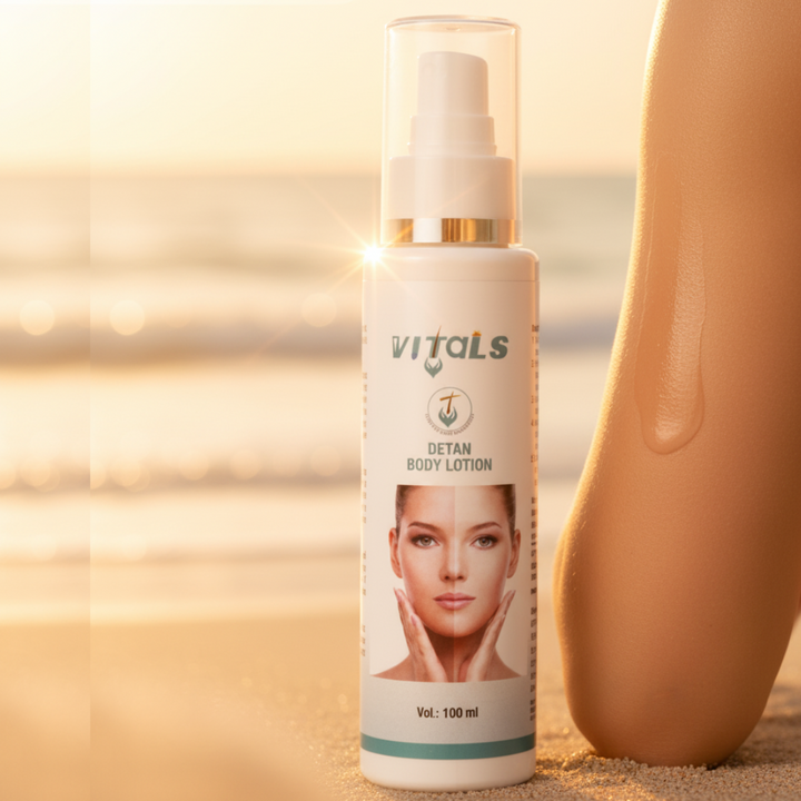 Skin Vitals Detan Lotion is a natural and organic preparation for tan removal, skin renewal, and brightening for the face & body. Its repeated use reduces tanned & pigmented skin, ingrown hairs, dry & environmentally damaged skin.